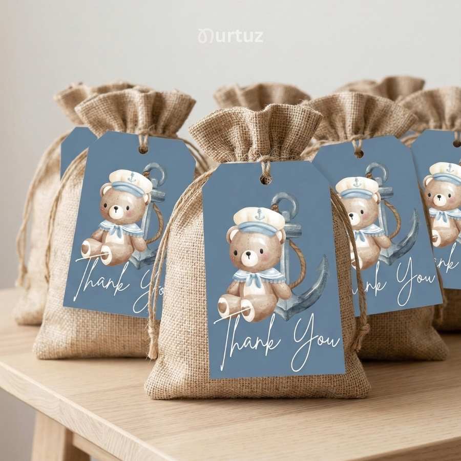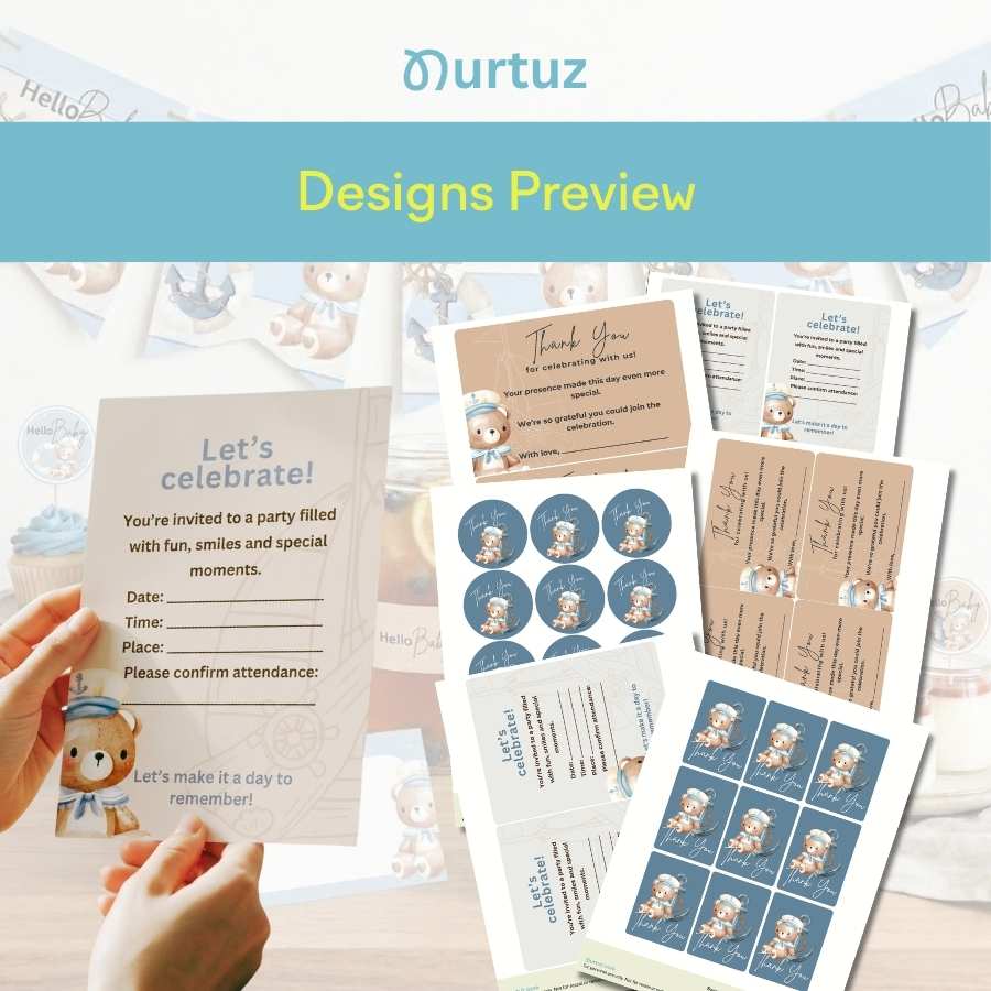 This set is specifically designed to be cohesive with the rest of the Nautical Baby collection, ensuring a seamless look from the first invite to the final thank you note.